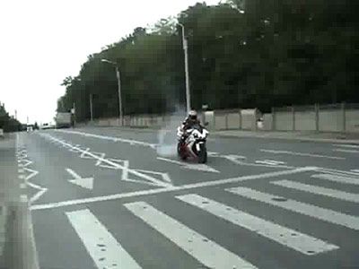 "Un motociclist care parcurge distanta Craiova - Bals (25 km) in sase minute, in trafic foarte aglomerat. Peste 290 km/h, depasiri extreme, senzational pentru Romania. Este cea mai mare viteza inregistrata in Romania".