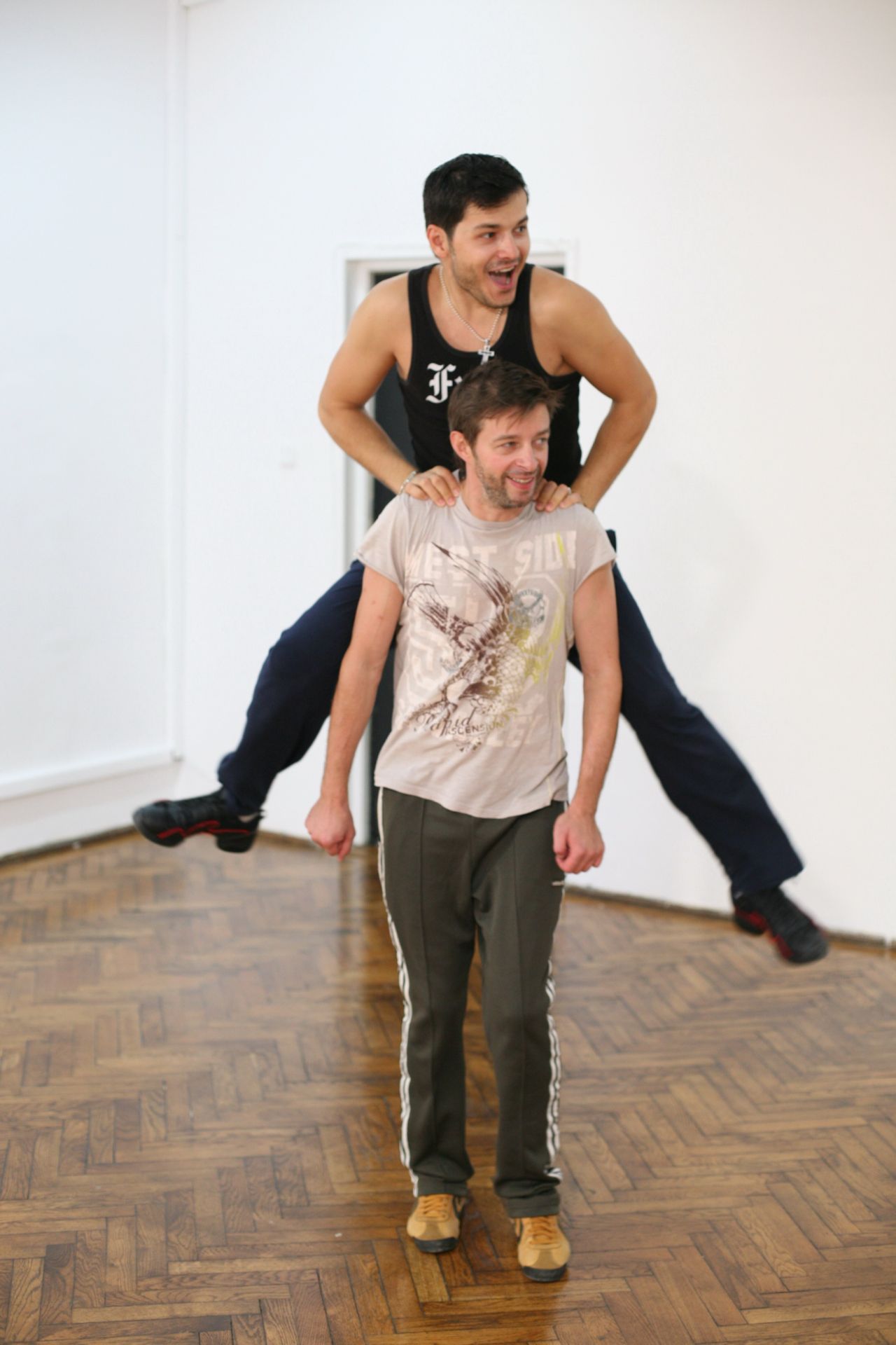 Fiecare dintre ei se incurajeaza cum stie mai bine pentru a face fata emotiilor inceputului de drum “Dansez pentru tine”.