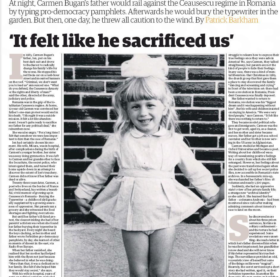 Guardian din Anglia prezinta povestea familiei Bugan, vanata de Securitate dupa ce Ion, tata si sot, a ales sa protesteze in strada in 1983 impotriva regimului Ceausescu.