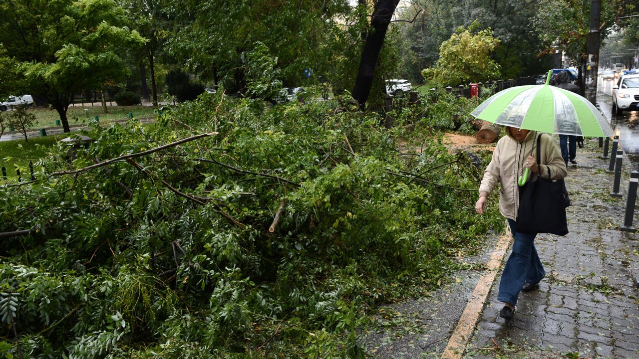 Pana acum, autoritatile au anuntat peste 25 de interventii in Capitala: 20 de copaci au cazut, 2 strazi au fost inundate, iar un panou publicitar s-a desprins de pe o cladire.