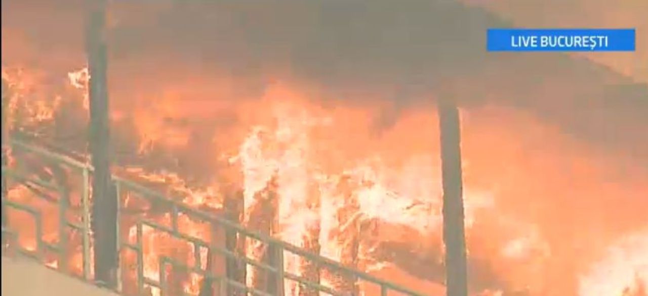 "Pompierii sunt depasiti de situatie, apa se scurge peste noi in loc sa stinga incendiul". Asa arata situatia in jurul orei 17.00.