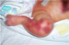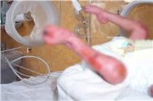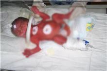 Primul dintre ei cantarea la nastere 1,8 kilograme si nu implinise o saptamana cand salonul in care se afla a fost cuprins de flacari. I-au ars manutele, degetele, fata si pieptul. Peste 40% din suprafata corpului a fost afectata, inclusiv caile respiratorii. Dar a fost bine ingrijit, iar pielea lui s-a regenerat, nu are urme si cantareste 2,2 kilograme.