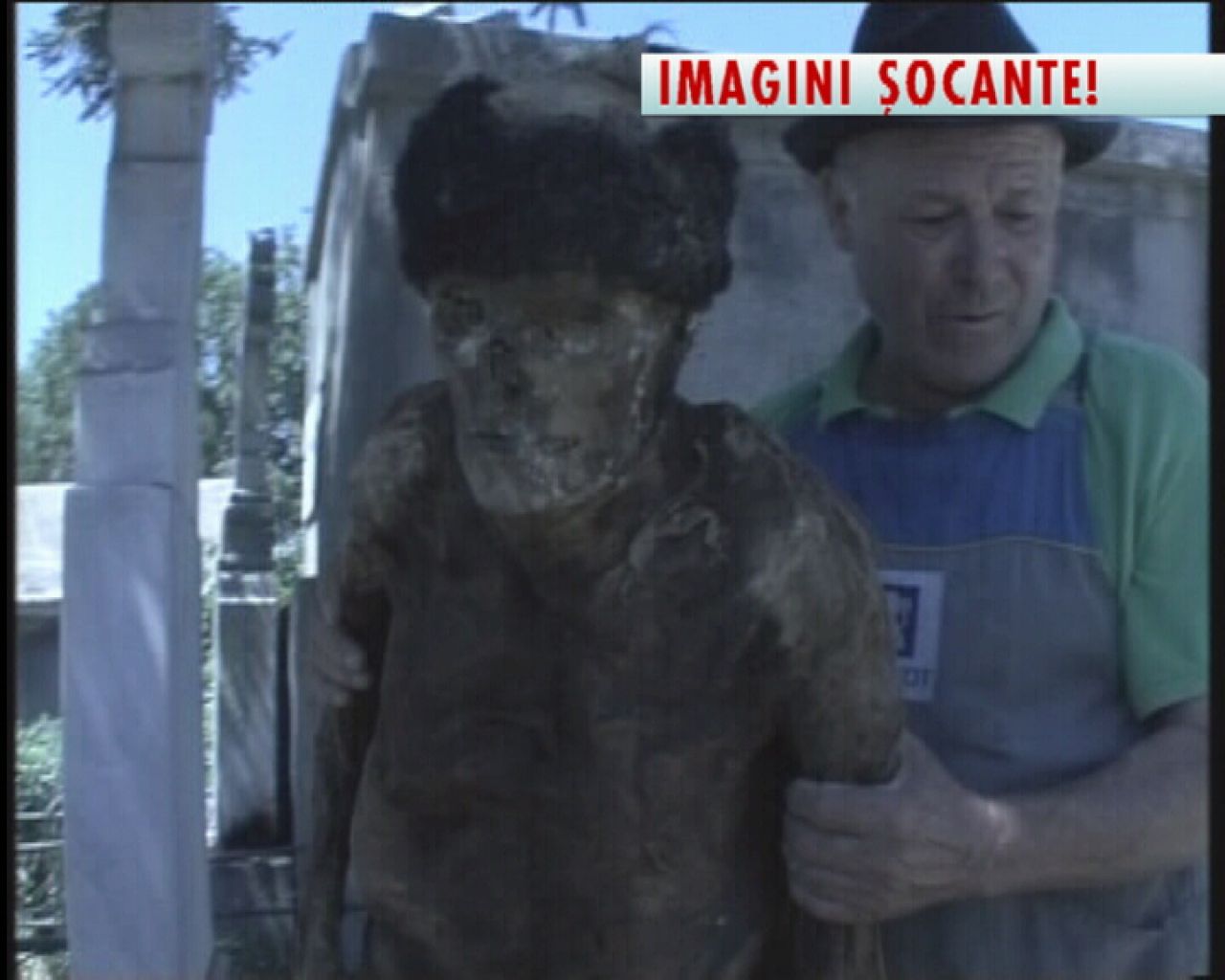 Rudele il deshumasera pentru a-i face loc unui urmas. Cand a scos trupul barbatului, groparul a ramas fara grai. Lucreaza de zeci de ani la cimitirul din Vacaresti, Dambovita, dar n-a mai vazut asa ceva. Sositi in mare graba, cei din familie l-au recunoscut imediat.