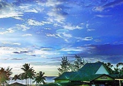 Obiectul zburator neidentificat a fost fotografiat de managerul unui hotel, sambata dupa-amiaza, plaja Tuaran. OZN-ul, rotund si transparent, a creat panica printre turistii aflati in hotel.