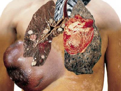 3. Emfizemul pulmonar: un procent mai mare de 90% din bronhopneumopatiile cronice au drept cauza fumatul, prin asocierea bronsitei cronice (care se traduce prin inflamatia cronica a cailor respiratorii) cu emfizemul pulomonar (care se traduce prin intinderea si spargerea alveolelor pulmonare).