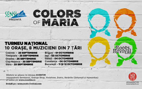 Roots Revival Romania- Colors of Maria, turneu national in 10 orase, inspirat de spiritul Mariei Tanase si sustinut de Sensiblu debuteaza pe 23 septembrie, la Craiova. Turneul se va incheia la Bucuresti, pe 12 octombrie, dupa ce va incanta publicul din cele mai importante orase din Romania.