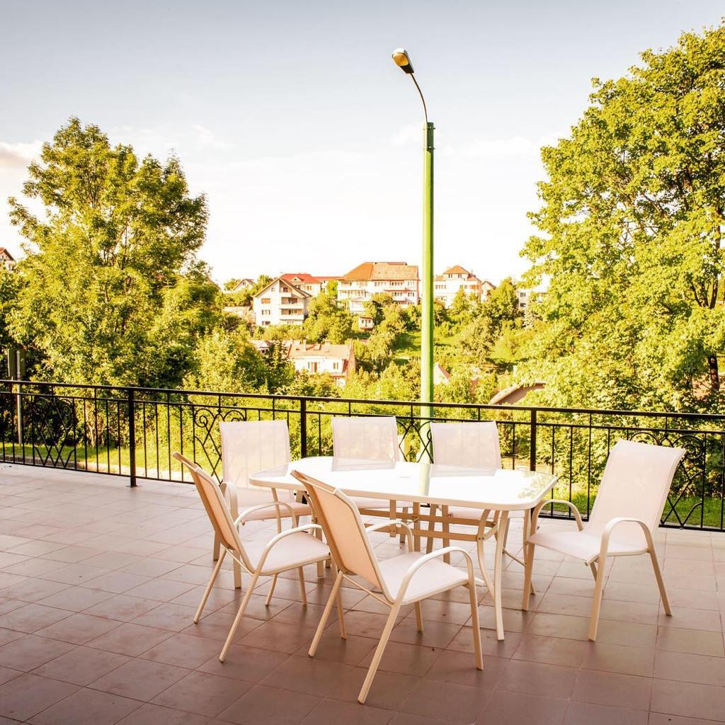 Peisajele de poveste pot fi admirate atat de la ferestrele camerelor cat si de pe cele trei terase amenajate, astfel incat primul gand pe care il ai atunci cand îi vei trece pragul este sa-ti doresti sa mai ramai inca o zi.