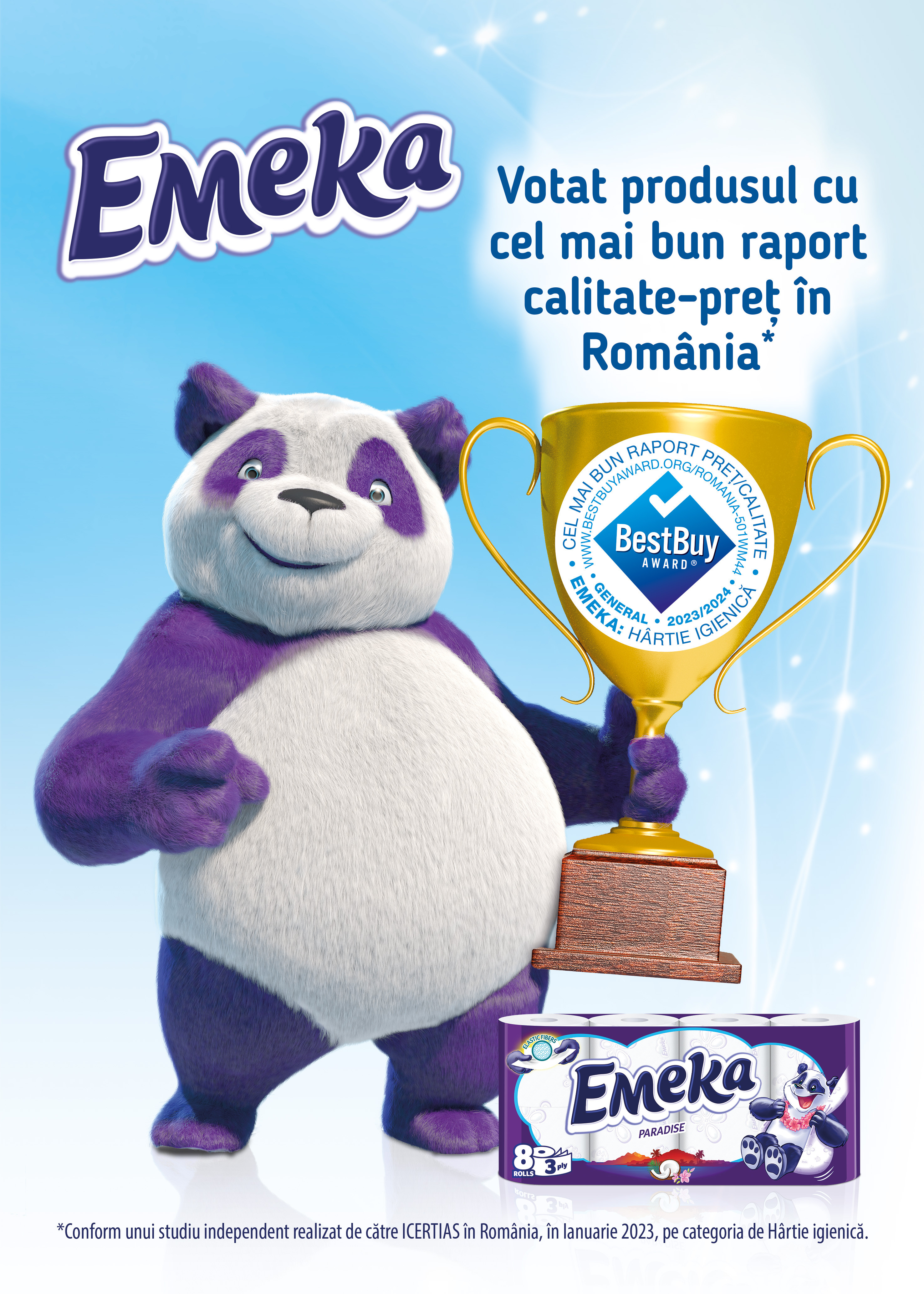 Prestigiosul premiu internațional pentru produsele cu cel mai bun raport calitate-preț - Best Buy Award 2023/2024 - a fost acordat uneia dintre cele mai populare mărci de hârtie igienică din România - Emeka.