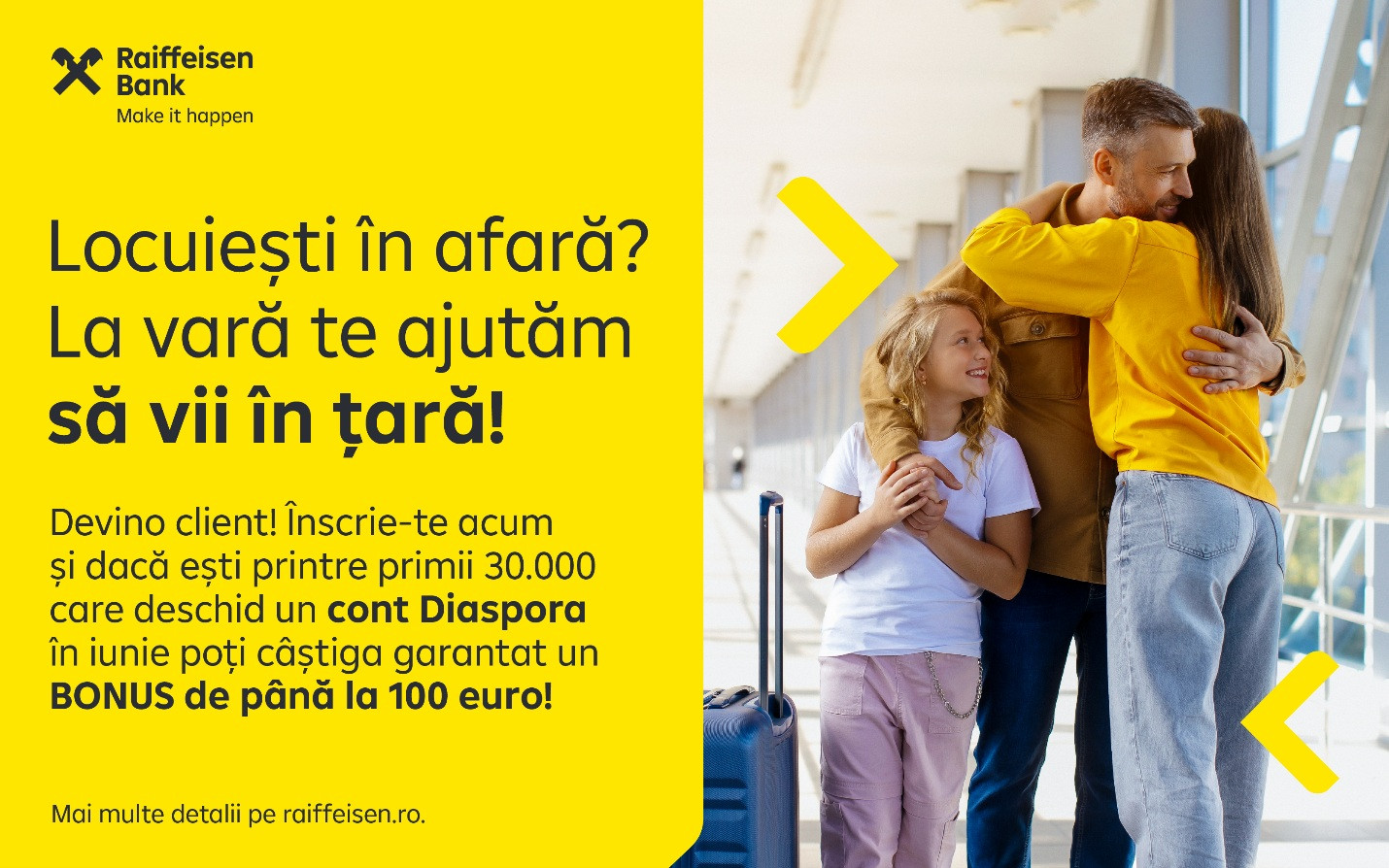 Noua ofertă Raiffeisen vine în sprijinul românilor din străinătate care își doresc o relație mai simplă și mai eficientă cu sistemul bancar din România. Până la lansarea oficială, cei interesați se pot înscrie până la data de 31 mai pentru a primi notificări și detalii despre produs.
