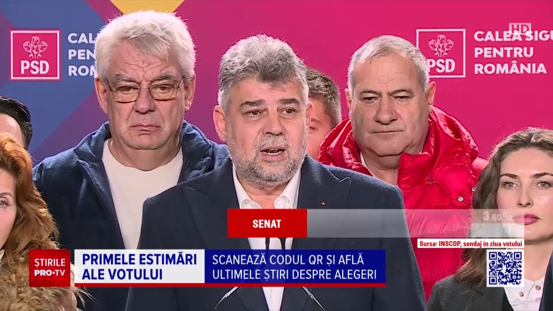 Președintele PSD Marcel Ciolacu a făcut o declarație de presă foarte scurtă după ce a aflat rezultatele exit-poll la alegerile parlamentare din 2024.