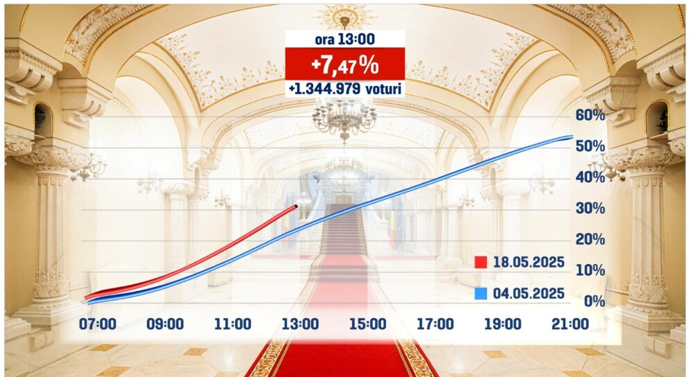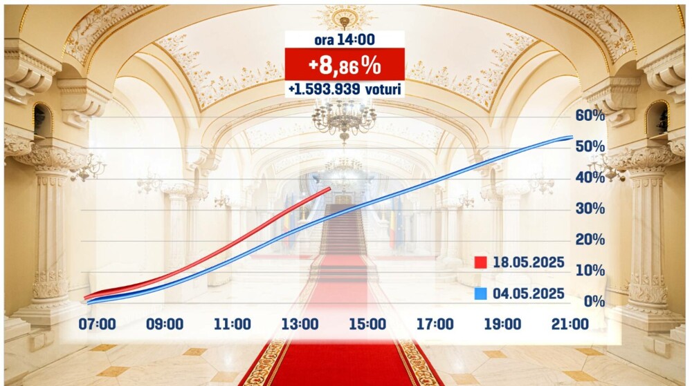Prezenţa este semnificativ mai mare faţă de primul tur al alegerilor prezidenţiale, desfăşurat pe 4 mai, când au votat 9,57 milioane de oameni (53,21%).