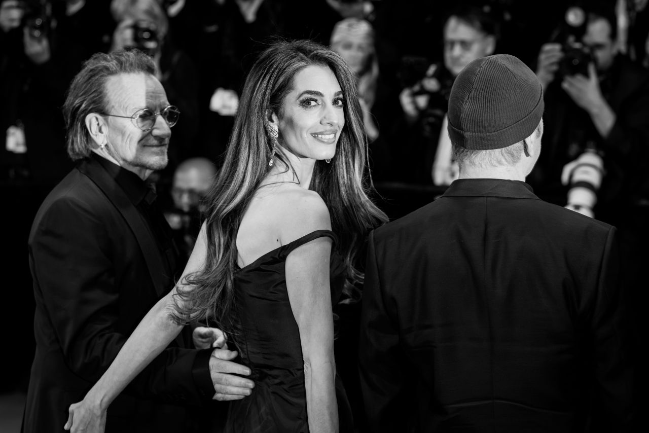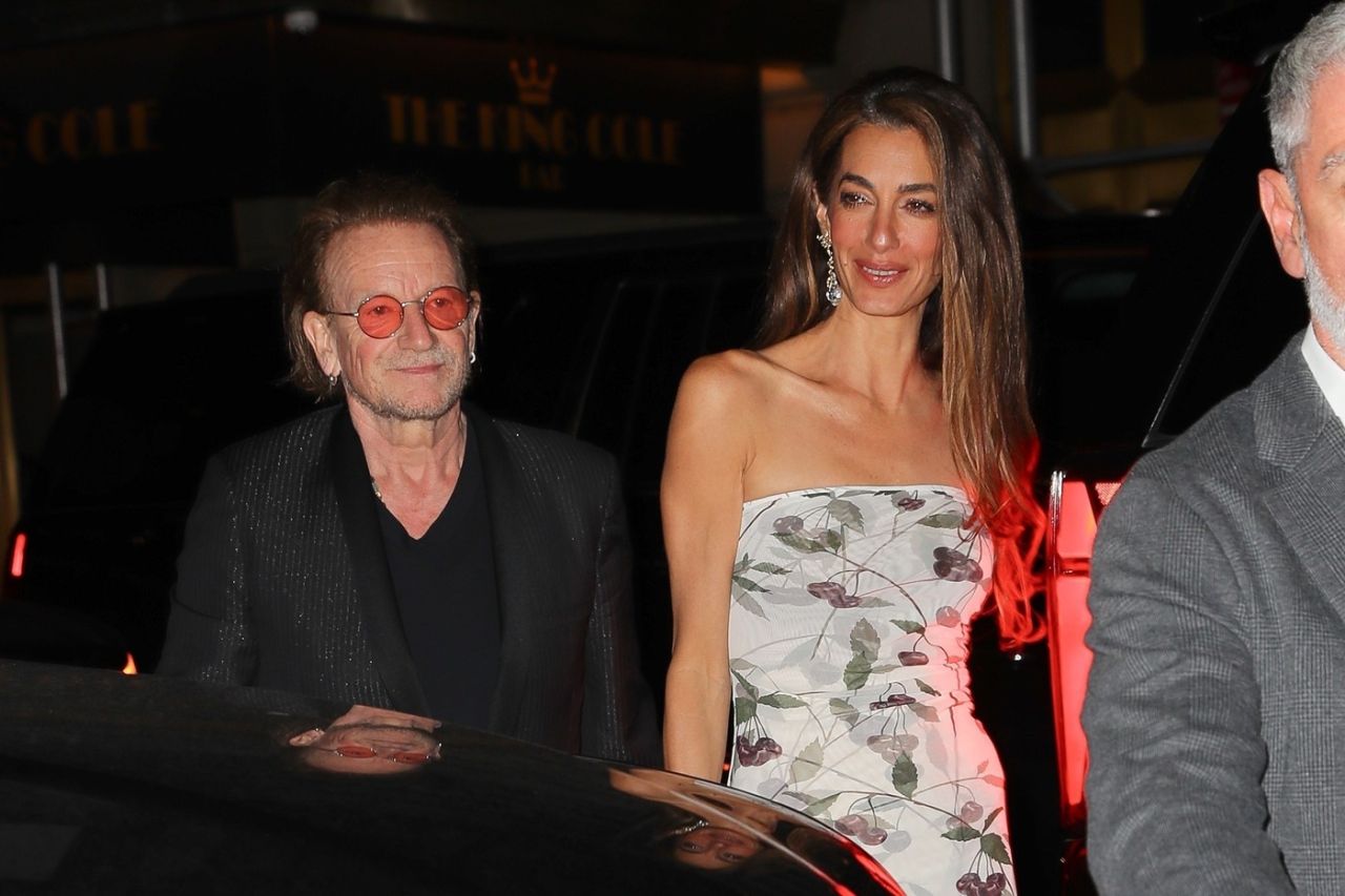 Amal Clooney, apariție plină de eleganță la cină alături de George Clooney, Bono și soția lui. FOTO