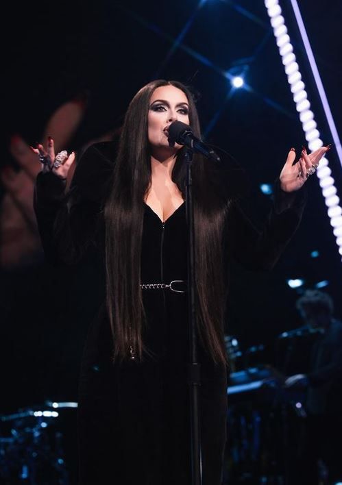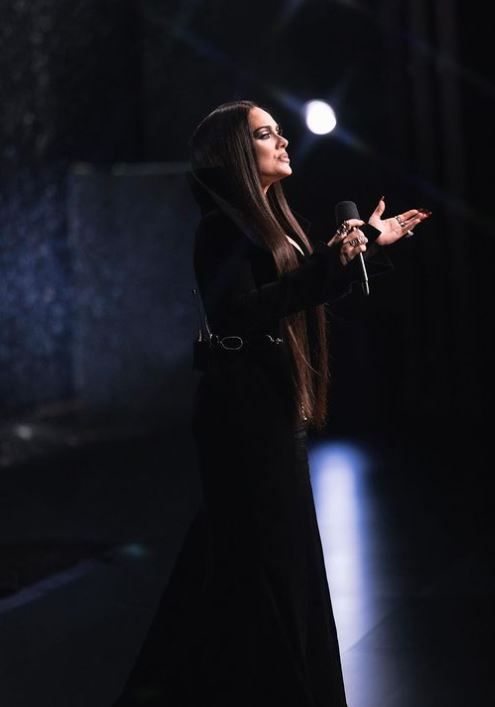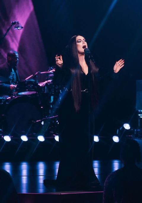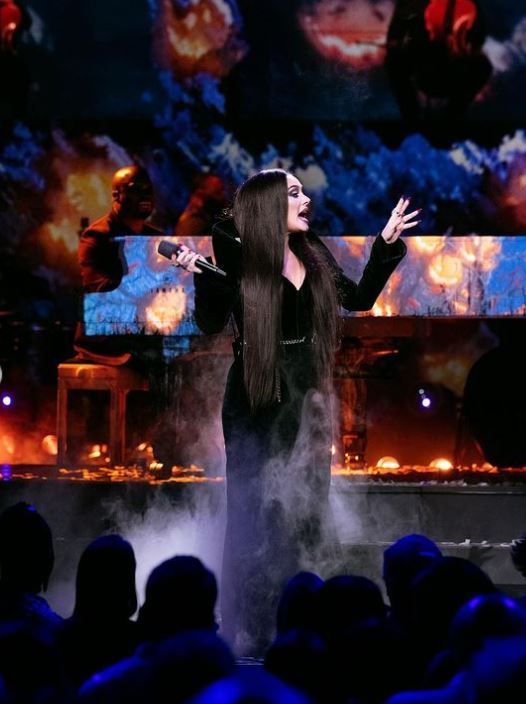 Adele a îmbrăcat o rochie neagră lungă până în podea. Cântăreața britanică a îmbrăcat costumul personajului Morticia Addams, pe care l-a purtat în timpul unui spectacol din Las Vegas.