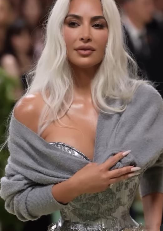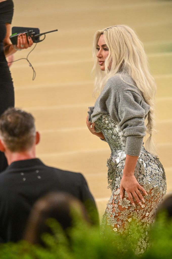 Într-o înregistrare făcută de Vogue Kim este surprinsă în timp ce probează ținuta de la Met Gala cu câteva zile înainte de eveniment. Pentru a rezista îmbrăcată în corsetul cu talie de viespe, vedeta a luat înghițituri atente de aer. La un moment dat, ea este întrebată „cum merge respirația”.