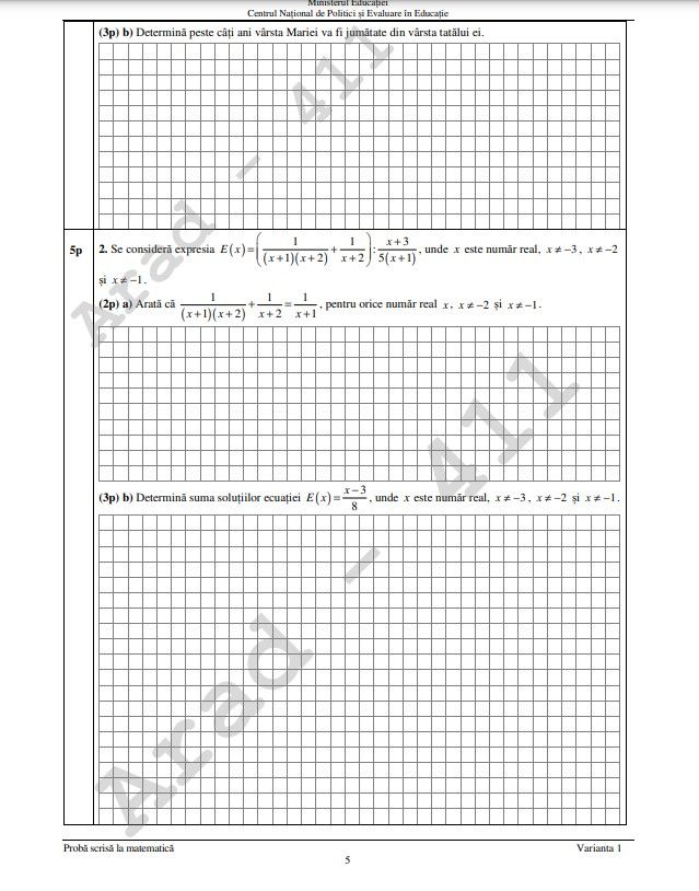 De asemenea, de la ora 12.00, în colaborare cu Centrul Educațional Unirea vom prezenta rezolvarea subiectelor la Matematică.