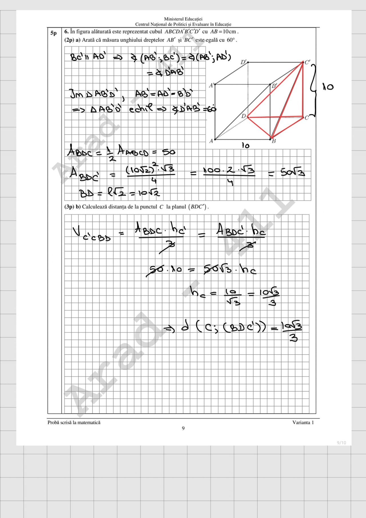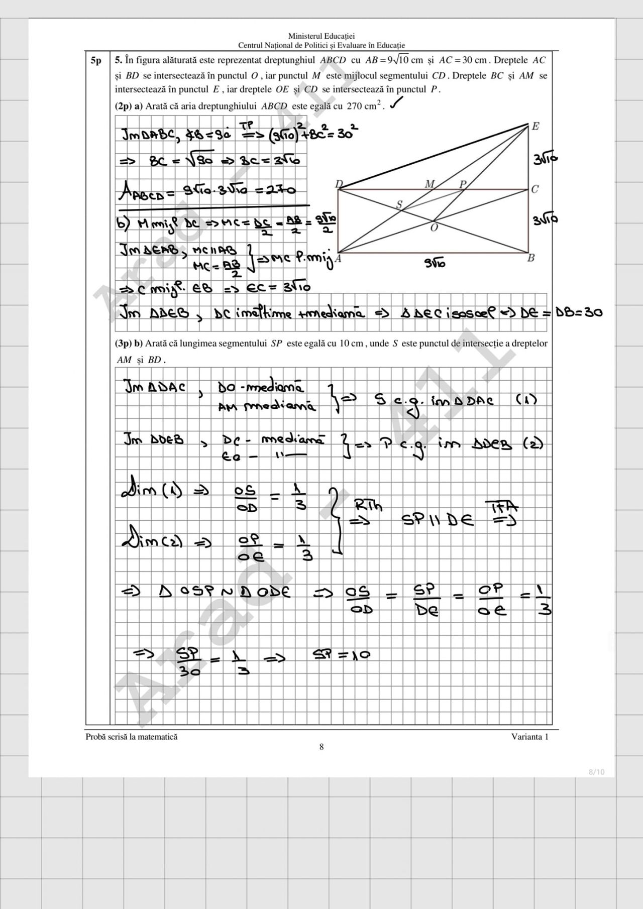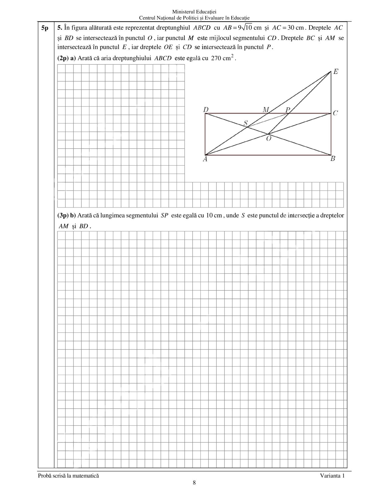 La proba de Matematică este permisă realizarea unor figuri geometrice (cu creion sau stilou/ pix de culoare albastră) în spaţiul pus la dispoziţie pentru rezolvarea problemelor.