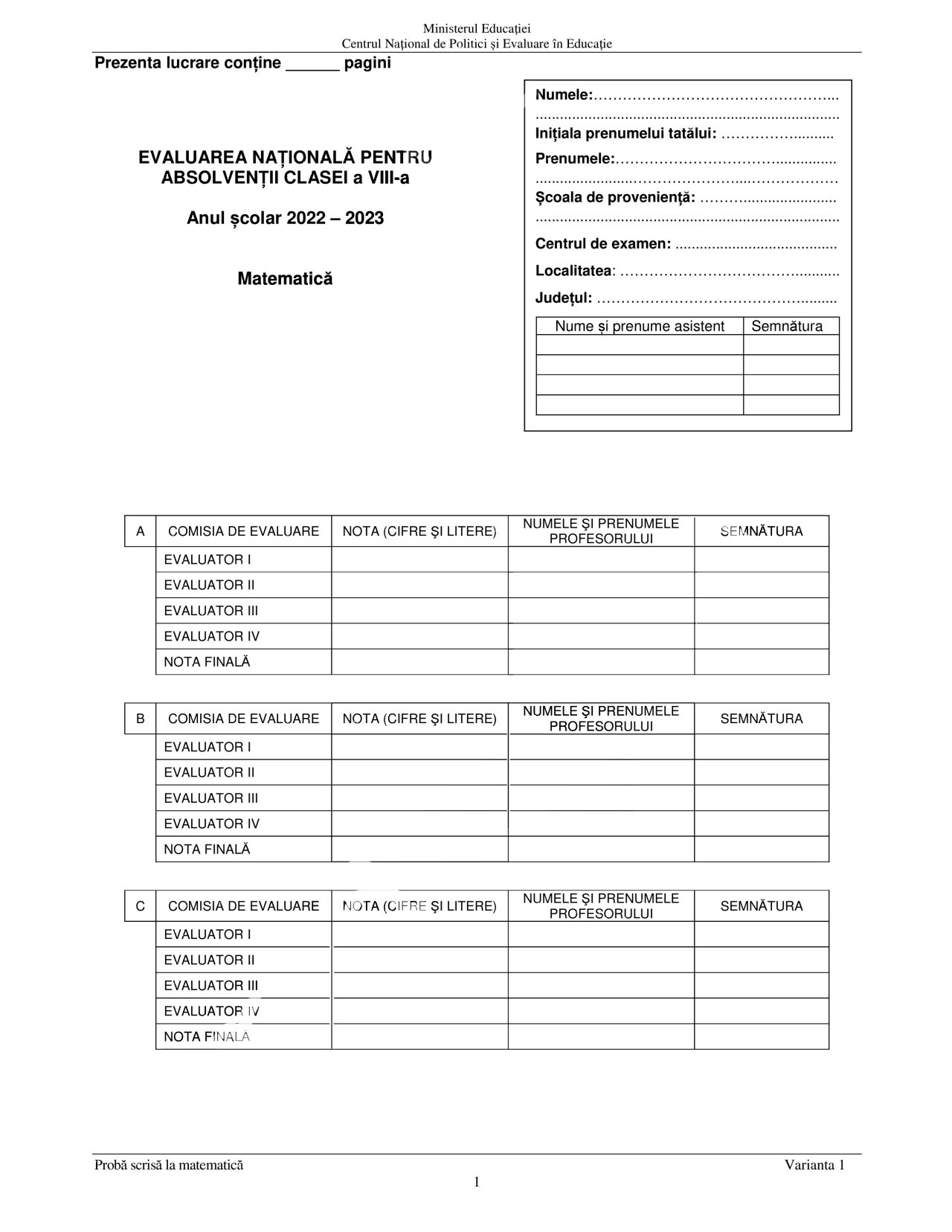 - 21 iunie 2023: Matematica – probă scrisă;
