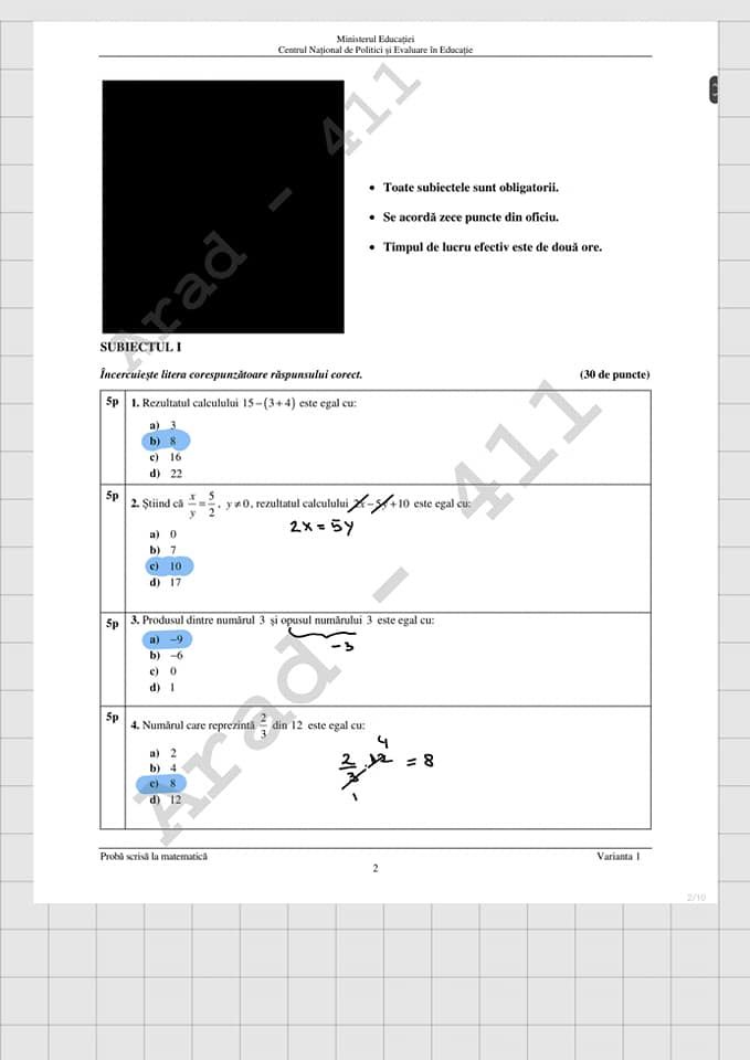 Știrile ProTV au obținut broșura parțială cu subiectele la Matematică.