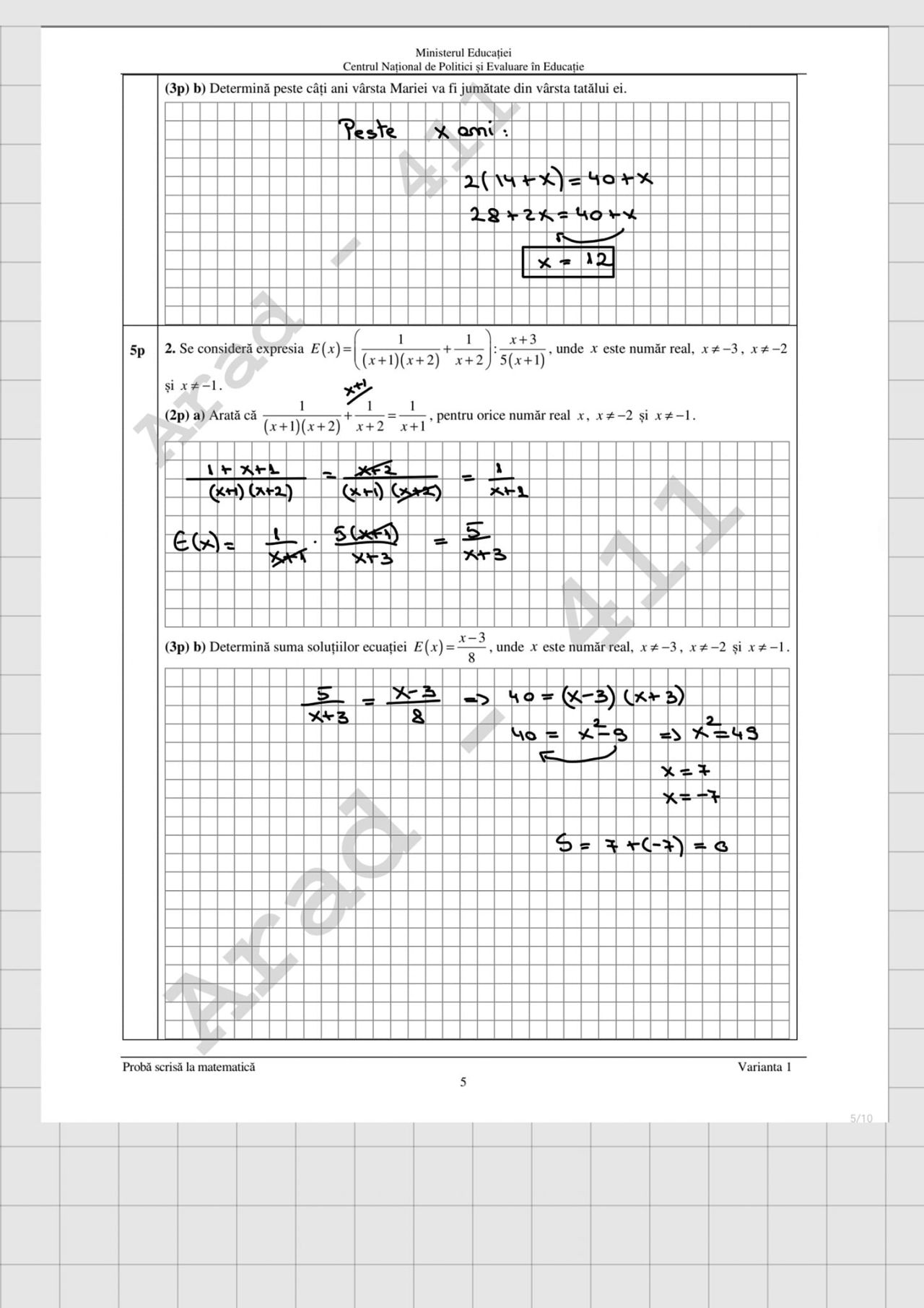 UPDATE: În GALERIA FOTO de mai sus găsiți rezolvările subiectelor la Matematică
