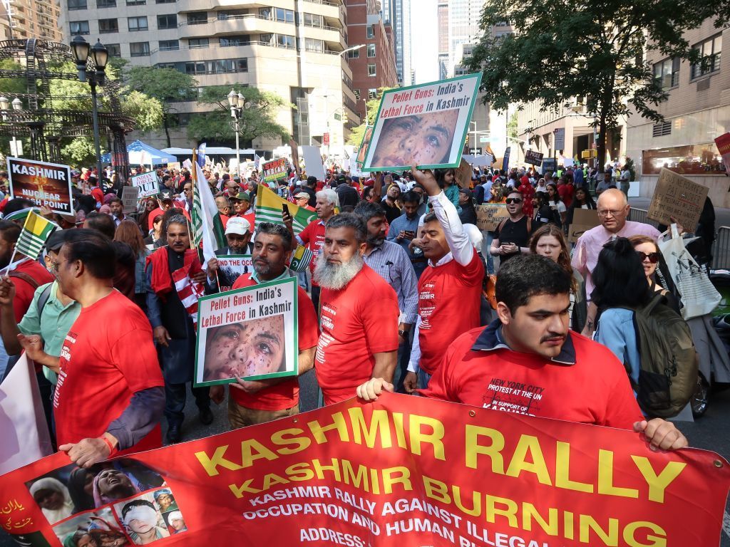 "Libertate pentru Kashmir, încheierea asediului" se putea citi pe pancartele manifestanţilor pro-Pakistan. De cealaltă parte, mesajele evidenţiau calitatea de "vizionar" a premierului Narendra Modi.