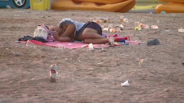 Plaja din Costineşti este sufocantă în timpul zilei. Şi de oameni şi de pahare de plastic, doze de bere sau sticle goale.