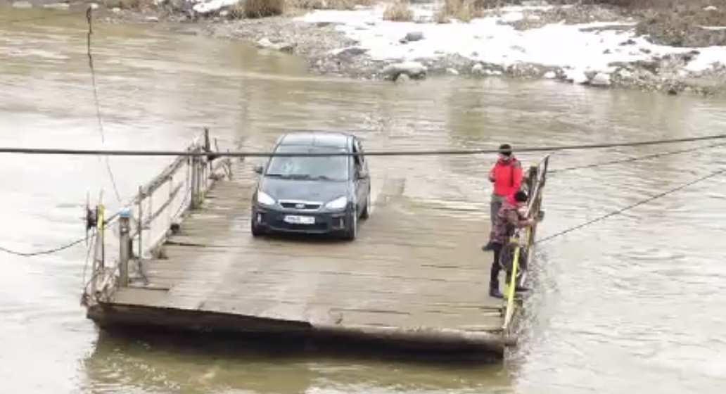 Într-o localitate din Maramureș, șoferii trec cu mașina de pe un mal pe altul al ...