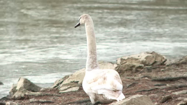 Un biet pui de lebădă, care avea prins în cioc un cârlig de pescuit, a fost ...