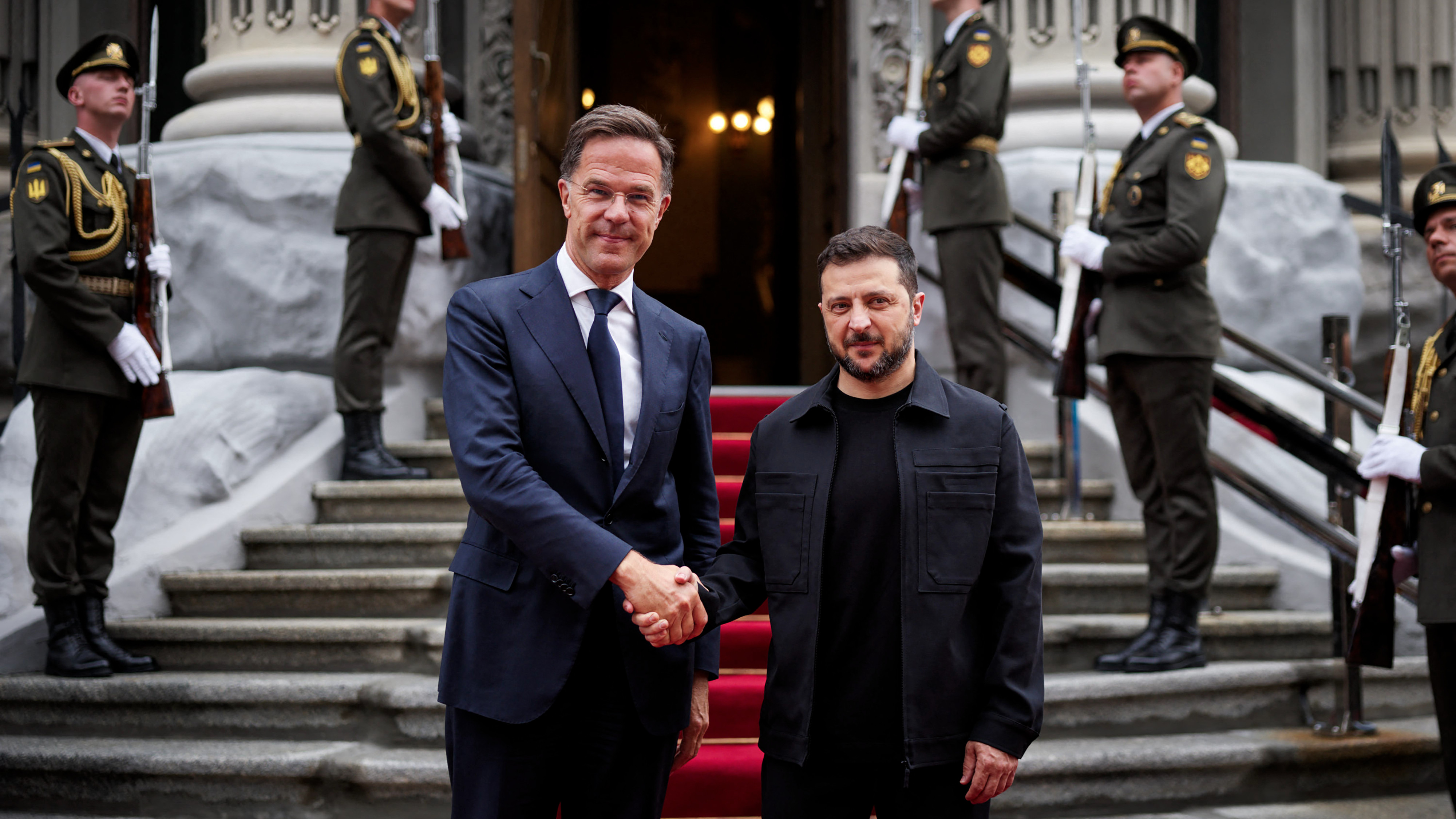 Preşedintele ucrainean Volodimir Zelenski şi secretarul general al NATO, Mark Rutte, ...