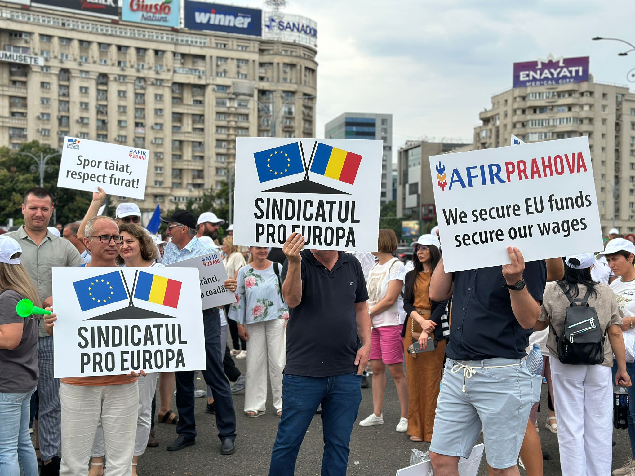 Sindicaliștii din Ministerul Proiectelor Europene, APIA și AFIR protestează în fața ...