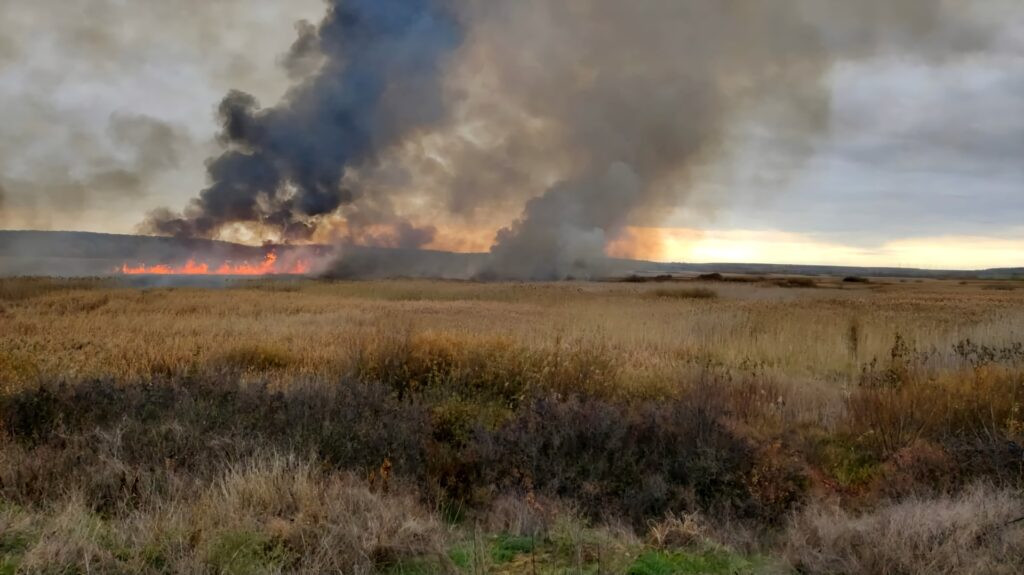 Un incendiu de vegetaţie uscată şi stuf a izbucnit duminică după-amiaza în Delta ...