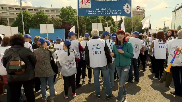 Miercuri au protestat în București în jur de 15 mii de profesori și angajați ...