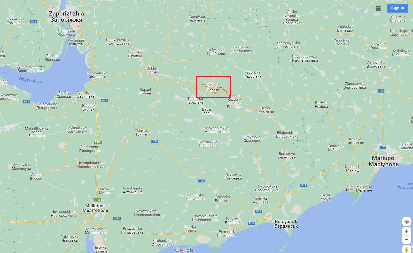 Sediul partidului politic Rusia Unită din oraşul ucrainean Polohî, ocupat de Rusia, ...