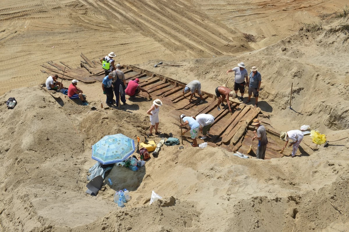 Arheologii din Serbia au îndepărtat cu grijă nisipul şi pământul de pe lemnul ...