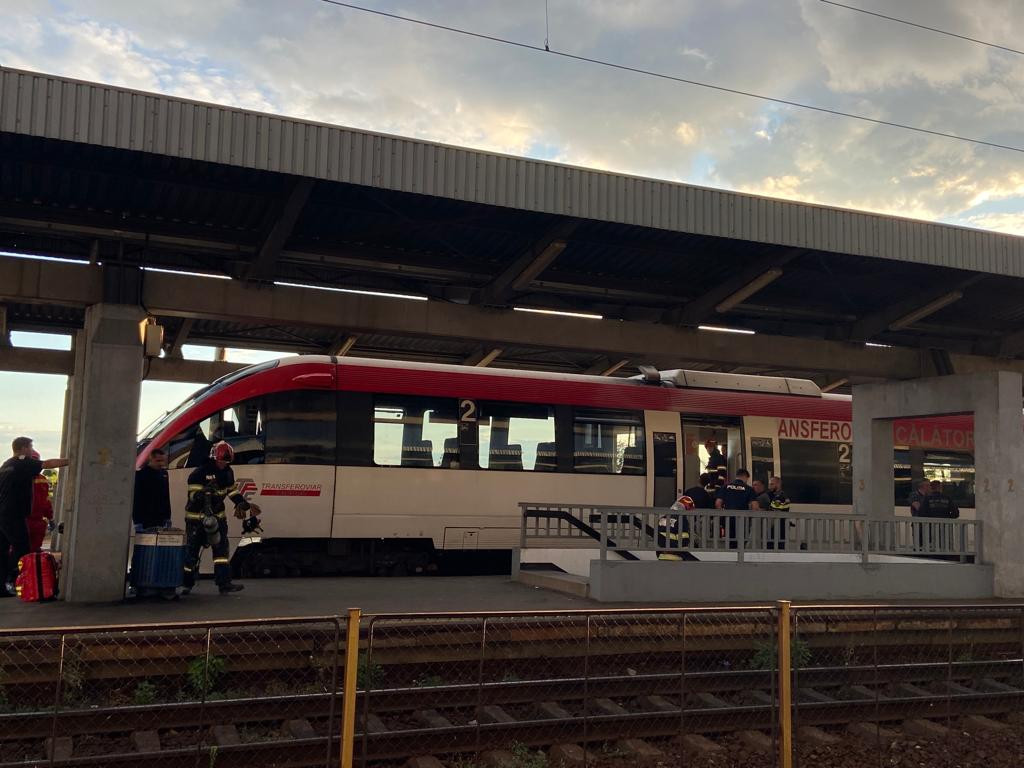 Pompierii intervin, marţi seară, pentru stingerea unui incendiu izbucnit la un tren de ...
