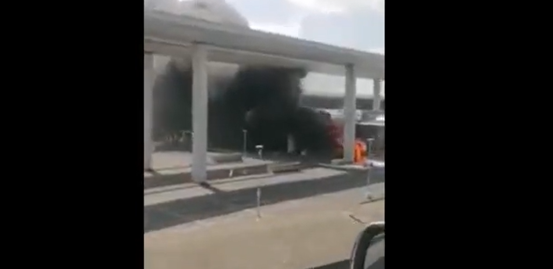 Un autobuz a luat foc, duminică, în faţa aeroportului Roissy Charles-de-Gaulle, ...