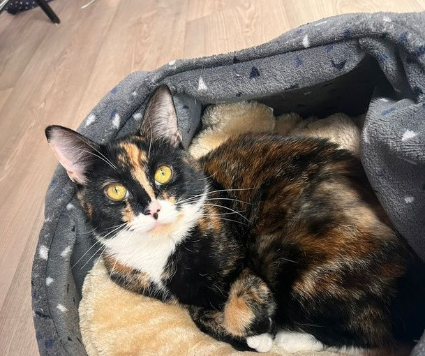 O pisicuță adorabilă a fost abandonată de stăpânul ei, iar în coș a fost ...