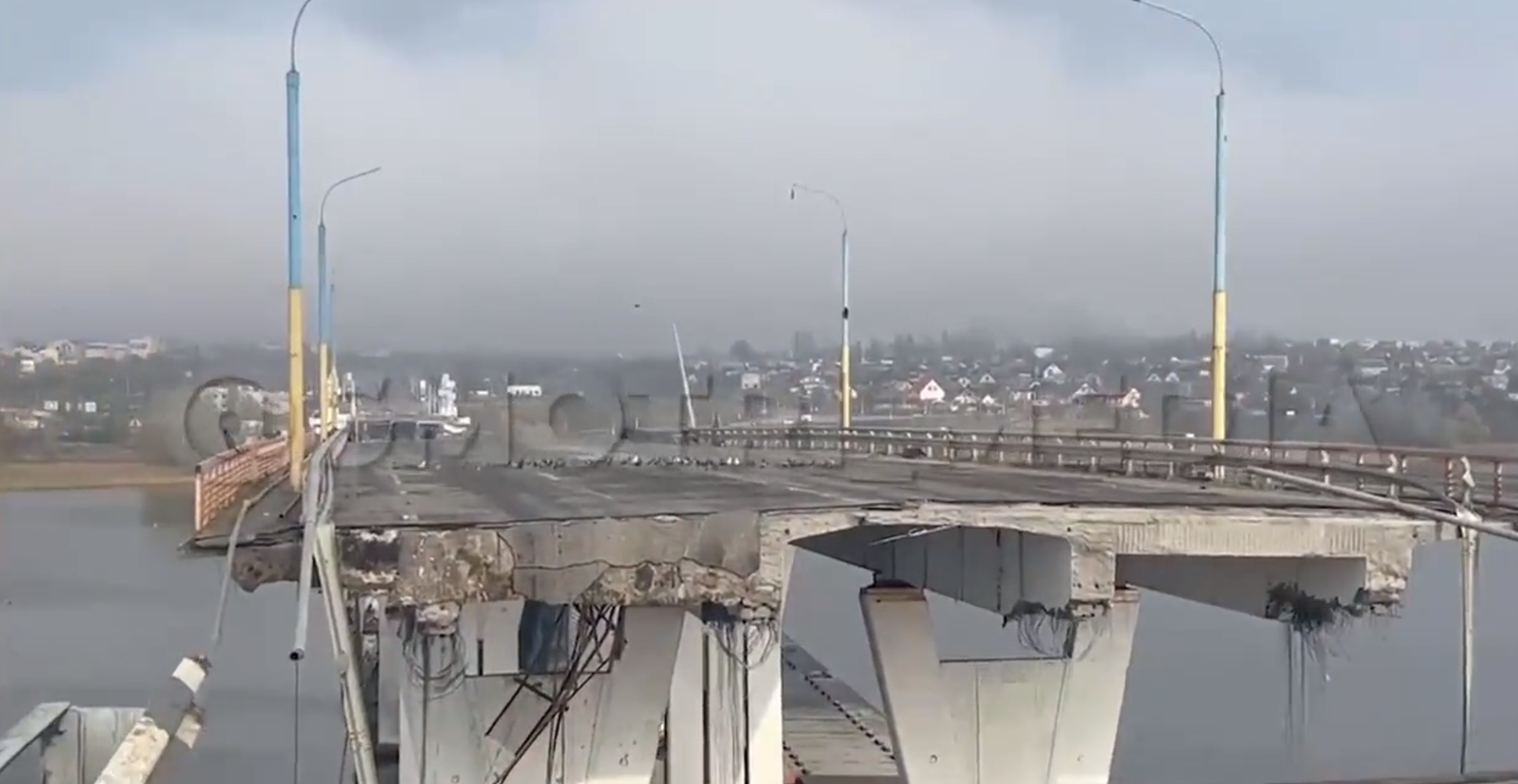 Podul Antonivski, singurul pod rutier care face legătura între oraşul Herson din ...