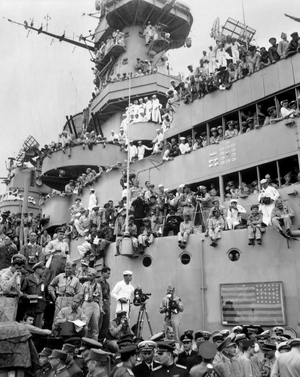 La 2 septembrie 1945, capitularea japoneză a fost semnată la bordul navei USS Missouri ...