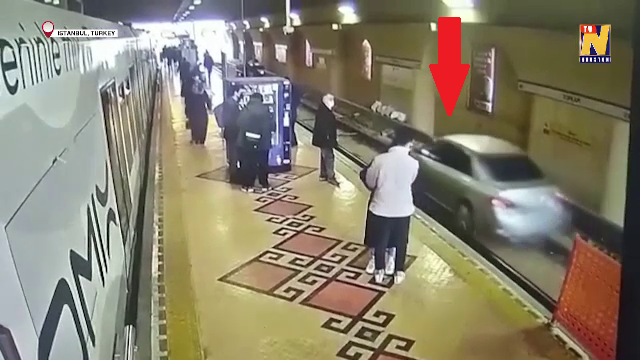 Un șofer din Istanbul a ajuns accidental pe șinele de metrou, după ce a virat greșit ...