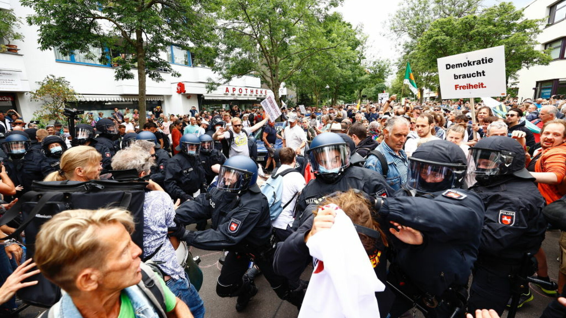 Mii de oameni au protestat, sâmbătă, la Berlin, faţă de strategia guvernului german ...