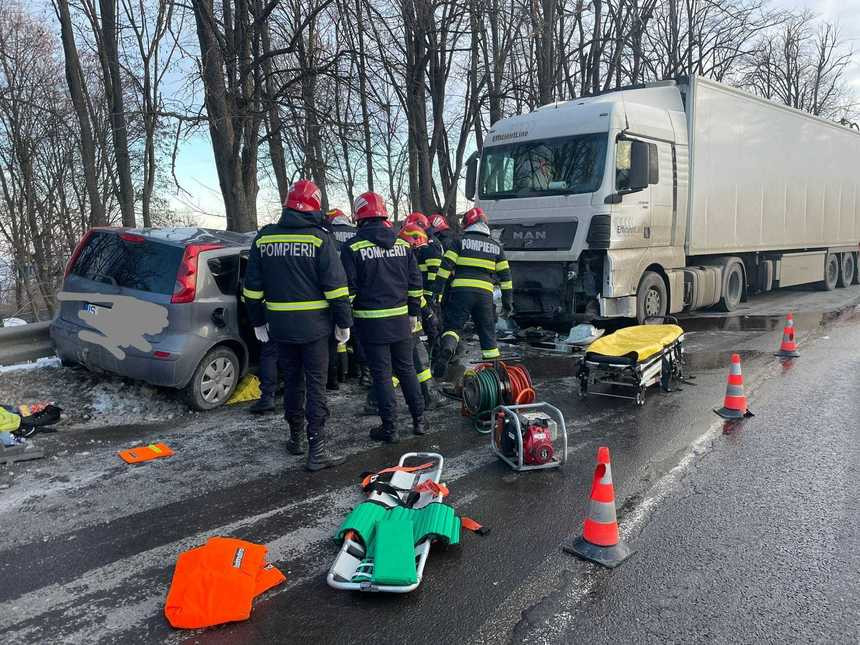 Un TIR şi o maşină s-au ciocnit, miercuri, pe DN 24, în Iaşi, conducătorul ...