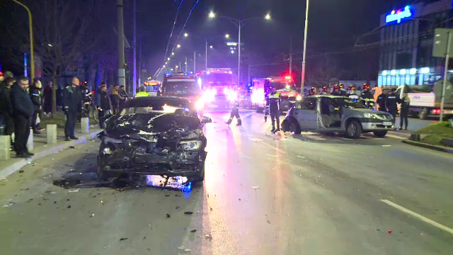 O mașină a fost spulberată joi seară de un alt vehicul pe un bulevard din București. ...