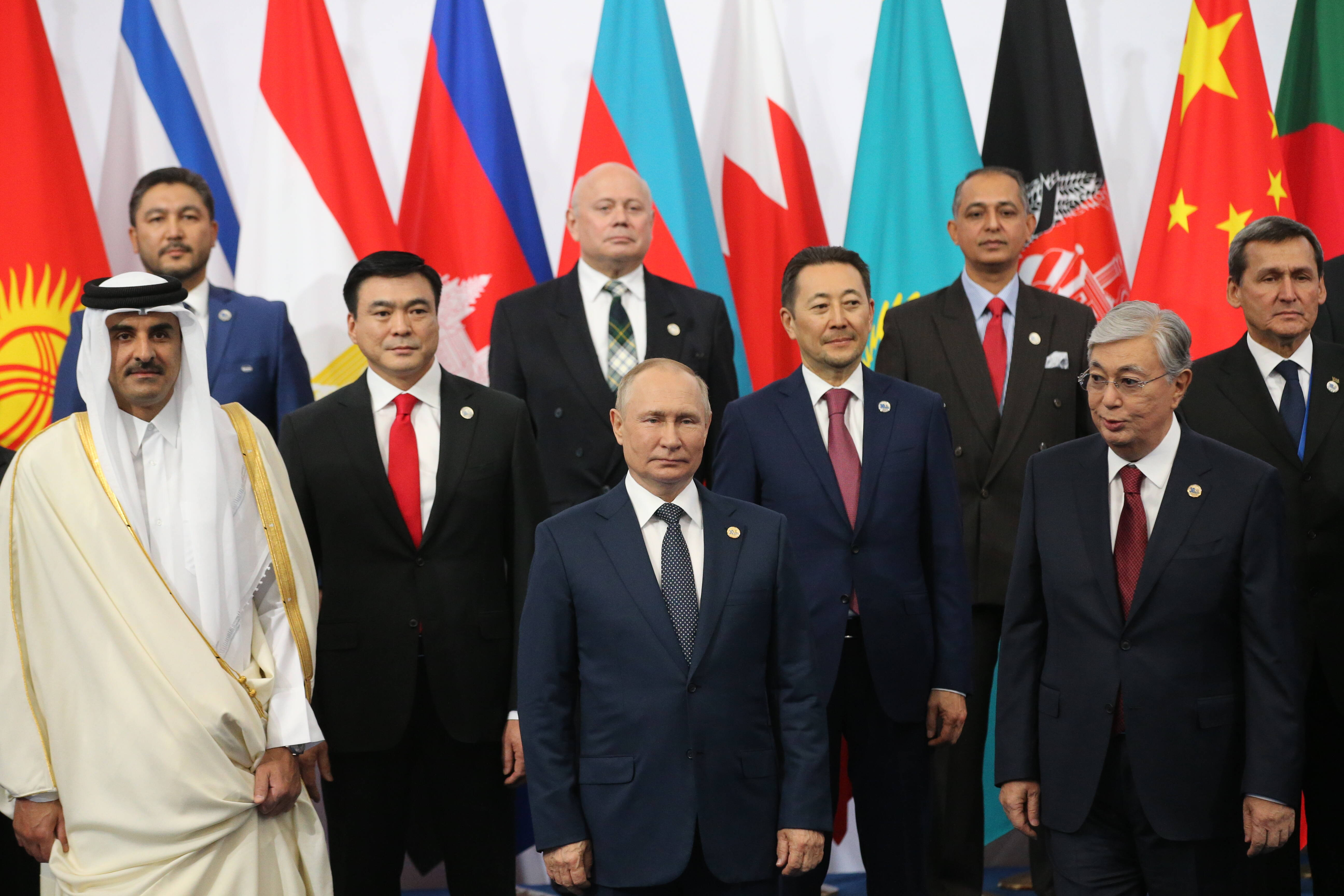 Aflat la Astana (Kazahstan), în cadrul unui summit, Vladimir Putin, președintele ...