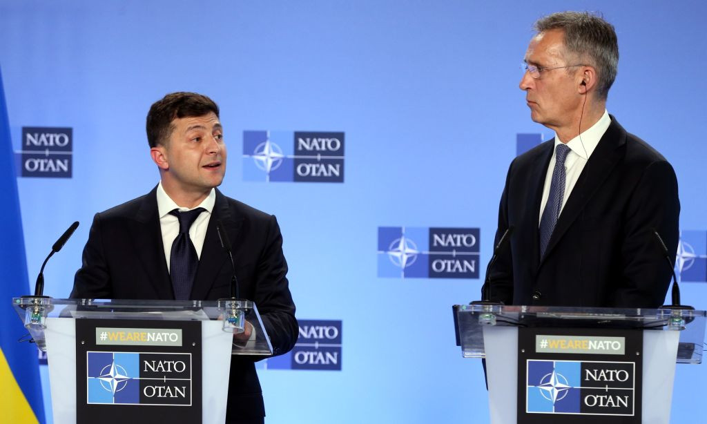 Președintele ucrainean Volodimir Zelenski a cerut liderilor NATO să ofere țării sale ...