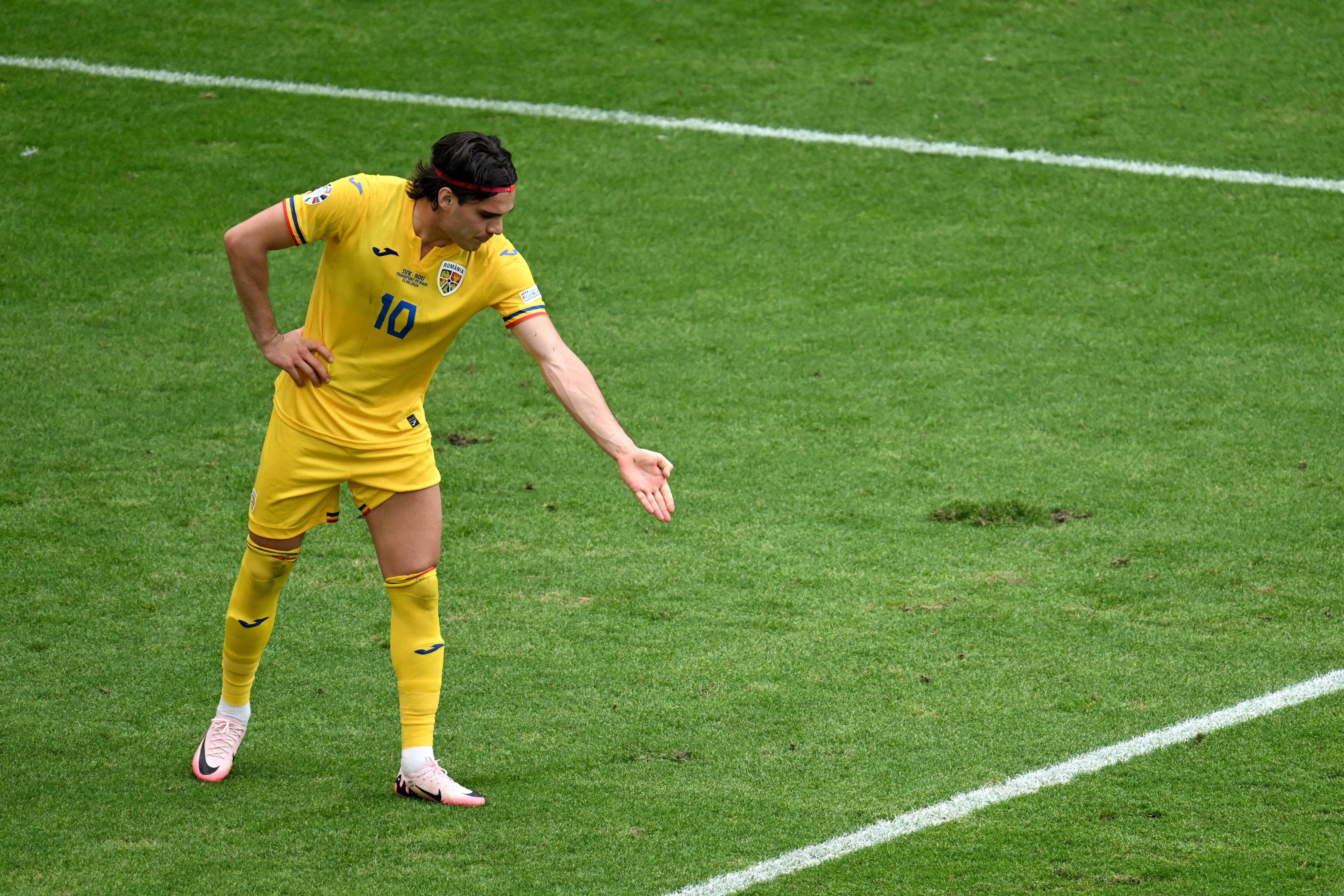 Lovitura de la 11 metri primită de România în timpul meciului cu Slovacia, ...