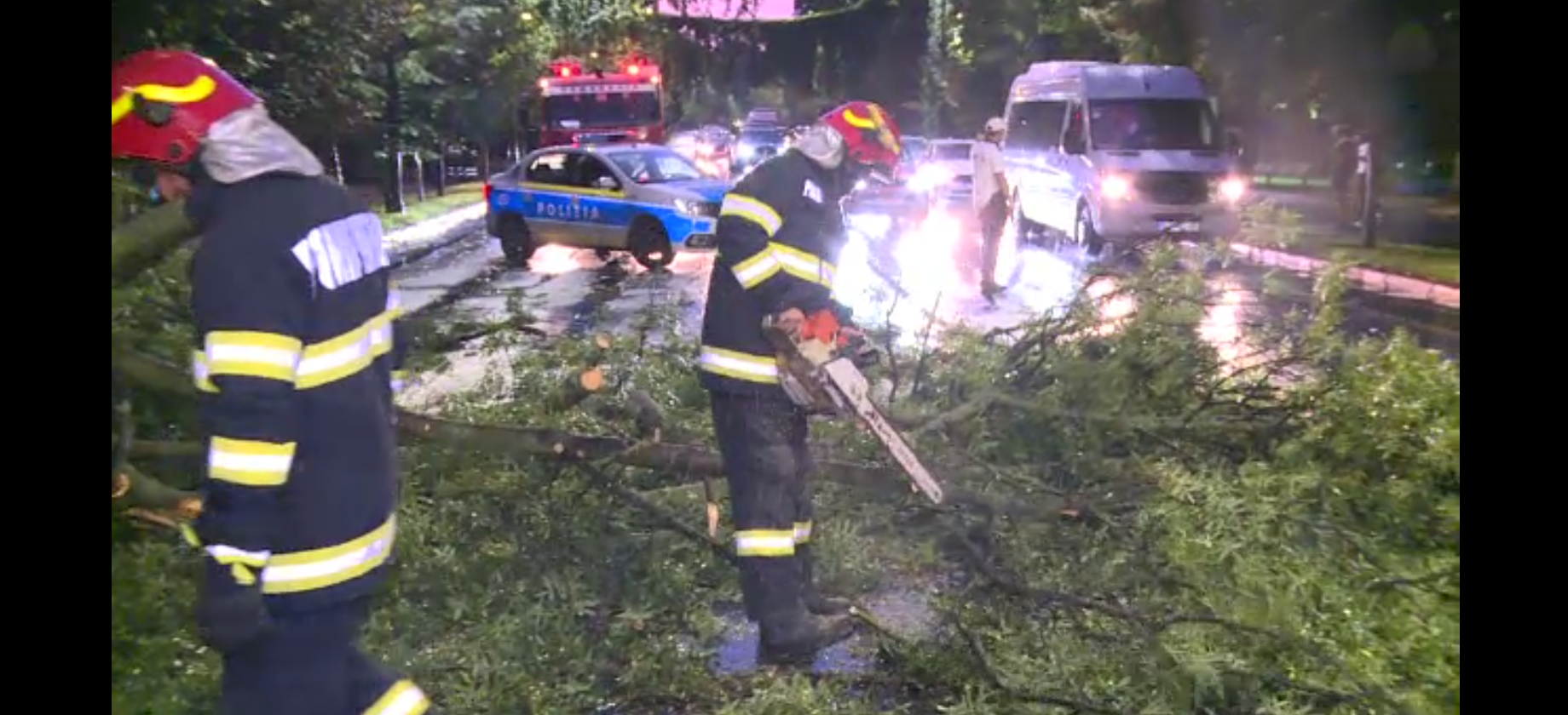 O ploaie torențială însoțită de vânt puternic a rupt mai mulți arbori ...