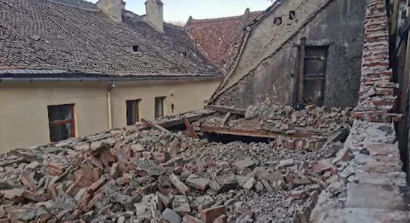 Incident grav în centrul Brașovului. Un zid al unei case vechi de secole, în ...