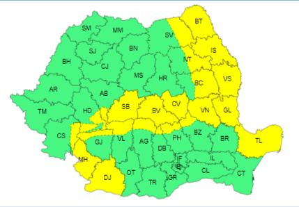 ANM a emis joi dimineață noi avertizări cod galben de vânt pentru mai multe județe ...