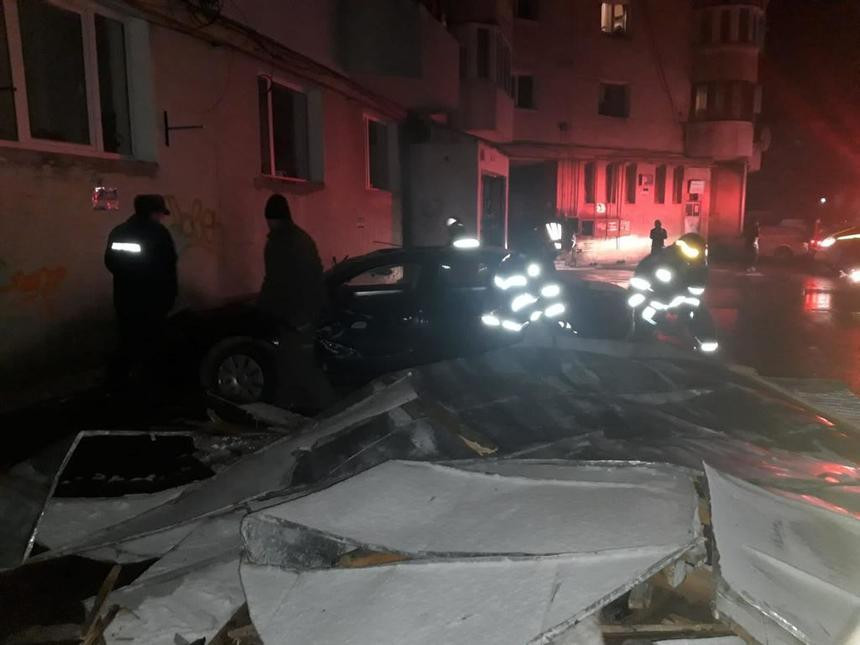 Mai multe autoturisme au fost avariate, luni seară, după ce mai multe elemente ale unui ...