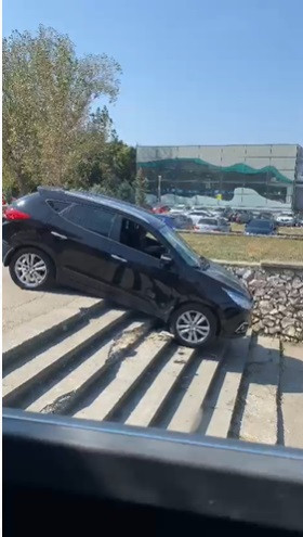 Un șofer a fost filmat, în Constanța, în timp ce cobora niște scări cu mașina.
